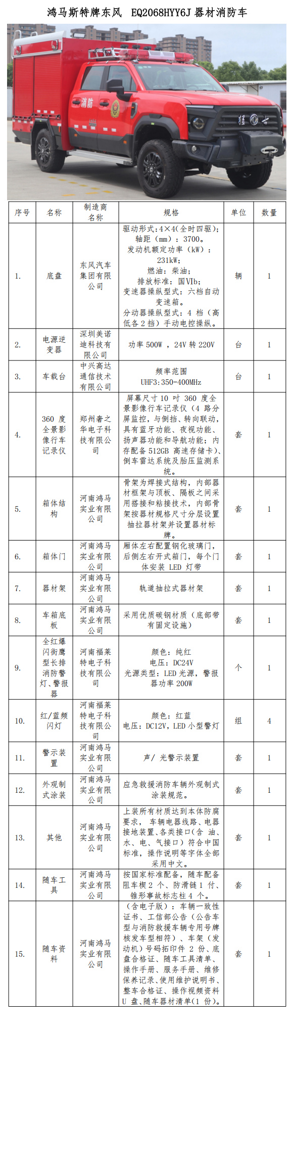 东风EQ2068HYY6J器材消防车